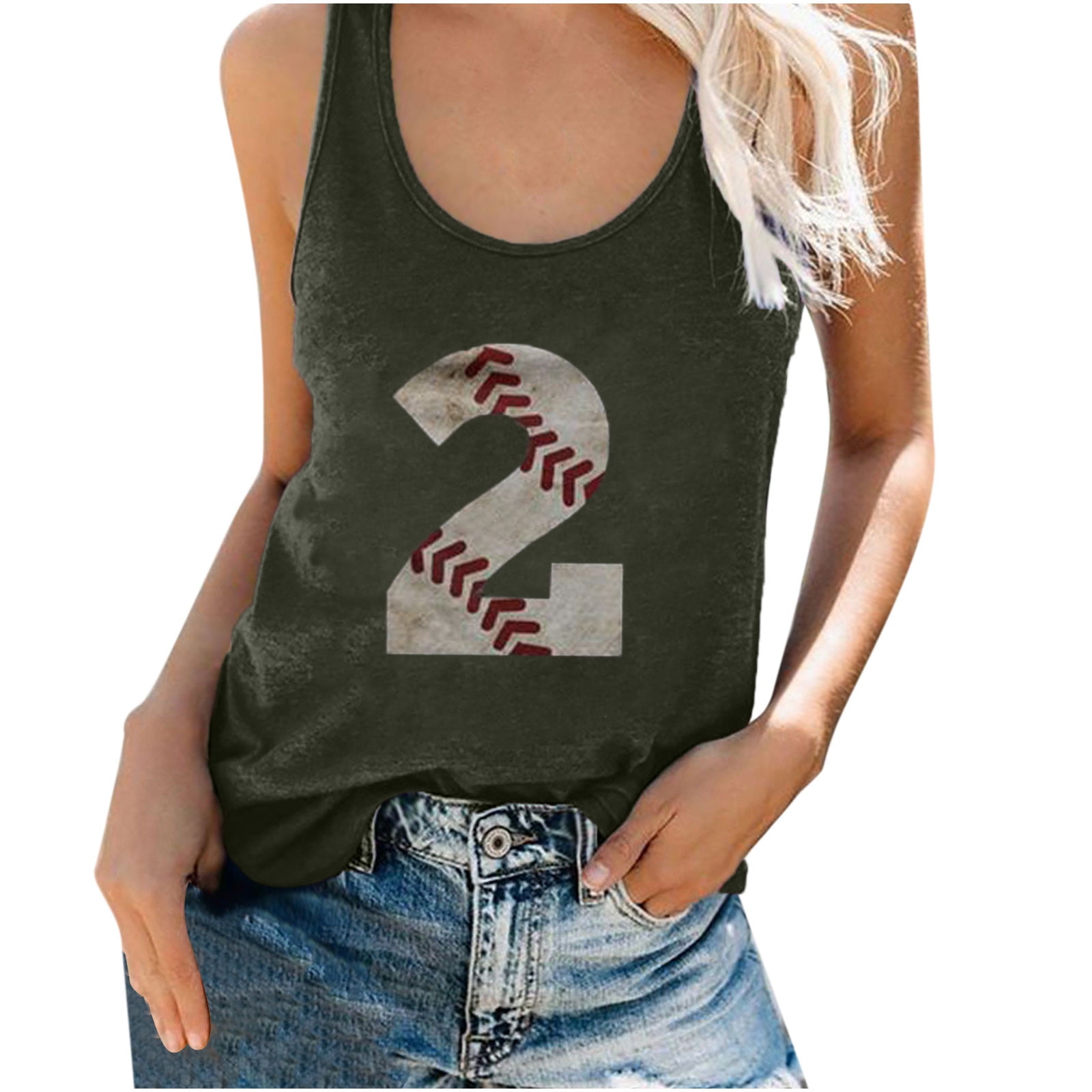 Ziloco Women S New O Neck Baseball Number Printing Sleeveless Casual Loose Vest Tops Tank Tops With Built In Bras Green 3xl Walmart Com